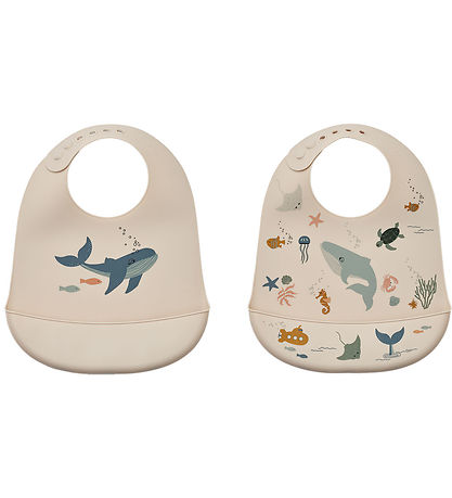 Beautiful Liewood bibs sold in a 2-Pack in beige with different print of DYR and plants from the sea in beautiful colours.