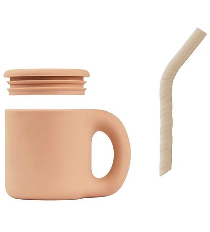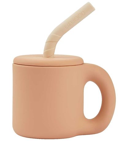 Fine Liewood cup in dusty pink with matching straws in beige. Both parts are made of soft silicone, which makes it easy for the kid to hold the cup.