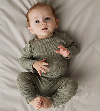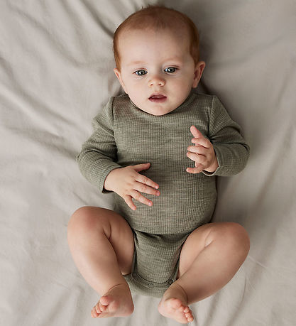 Beautiful Name It bodysuit in a dusty green shade. The Bodysuit has a stylish, ribbed pattern that adds structure and an elegant look. The Bodysuit is made with lovely merino wool.