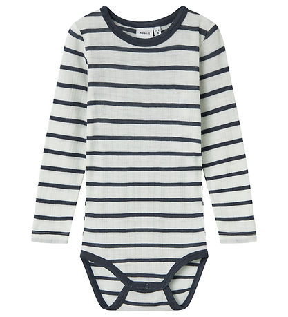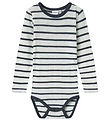 Beautiful Name It bodysuit with long sleeves in a light shade with narrow, horizontal stripes in dark blue. The Bodysuit has a narrow ribbed edge at the neck and the leg openings, which ensures a good fit.