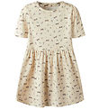 The Name It dress has short sleeves with a slight puff effect at the shoulders and a round throat. The Dress is cut at the waist, which gives a skirt with good width and pleats.
