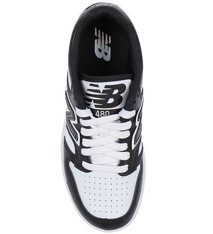 Stylish New Balance shoes in black and white leather and imitation leather with logo on the sides.