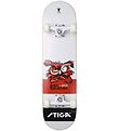 The Ookkie skateboard helps the kid learn to stand on a skateboard. The Kid stands on the wide skateboard board and holds on to the little pole. The kid is then pushed using the longer rod. The Kid can thereby achieve the sense of security of standing safely on a skateboard. After practice, the pole can be removed so that the kid can stand on the skateboard without help. The height can be easily adjusted according to the individual child.