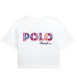 The Polo Ralph Lauren t-shirt has short sleeves with narrow ribbed edges, and the neckline also has a narrow ribbed edge.