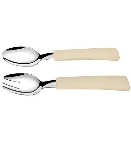 ThatThats Mine spoon and fork have good handles in silicone and are in stainless metal. The fork has a good shape and is not pointy, which makes it perfect for the little ones. The Set makes it easy for the little ones to eat and is in a smart design.