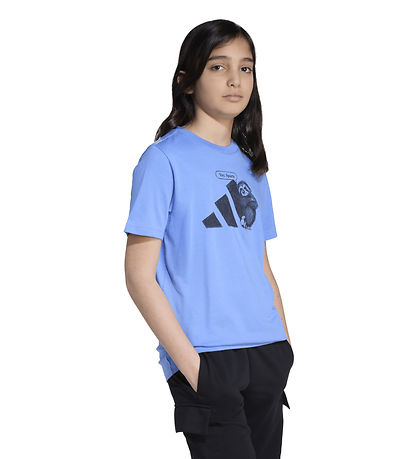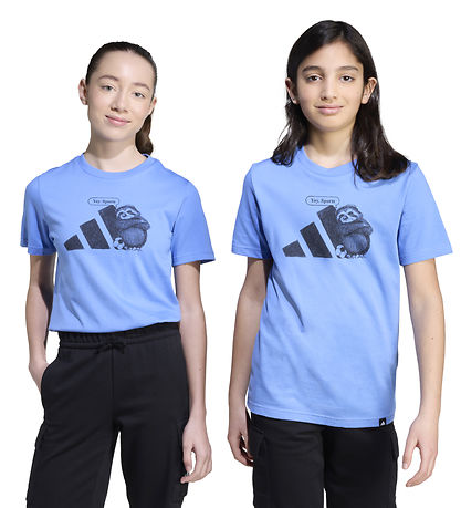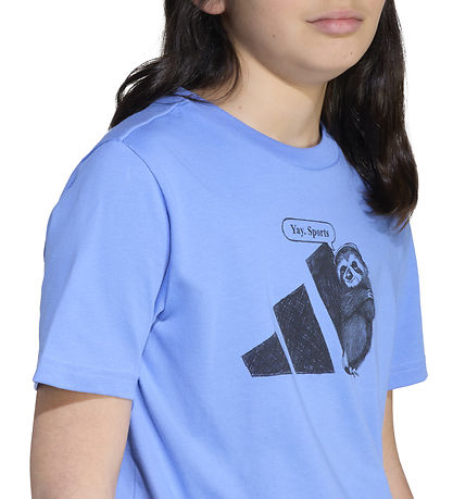 Beautiful adidas Performance t-shirt in a fresh blue shade. The T-shirt is adorned with a humorous print of a sloth standing next to the adidas logo and a football with the text "Yay. Sports".