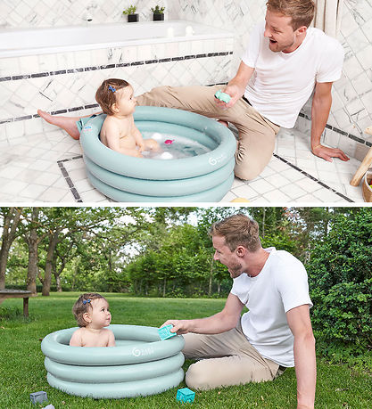 The Babymoov bathtub is round and covered with 3 rings, which are inflated separately. A baby seat is included so that infants can sit comfortably and safely in the bathtub. the baby seat can be deflated and placed on the outside of the bathtub with velcro. After this, the bathtub can also be used when the kid gets older. At the bottom there is a stopper so that the bathtub can be easily emptied of water.