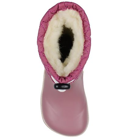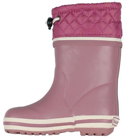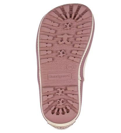 Fine Bundgaard thermo boots in dusty pink with a pink textile top. On the heel there is a white brand with the name "Bundgaard" in dusty pink. The shaft has a narrow, white edge, and all the way around the sole there is a white stripe with a narrow, dark pink stripe in the middle.