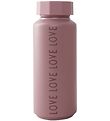 Smart Design Letters thermo bottle in purple, with "Love" written four times on the side, in dark purple.