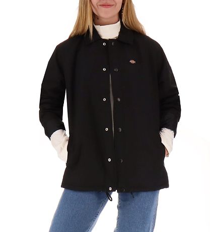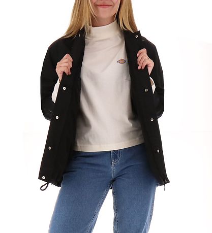 The Dickies jacket has long sleeves with elastic edges at the wrists and a classic collar around the neck. It is opens with continuous practical push buttons at the front. The Jacket has an open pocket on each side, and it is possible to adjust the waist opening with internal drawstring.