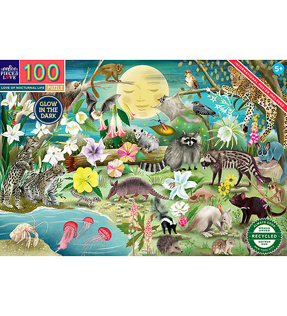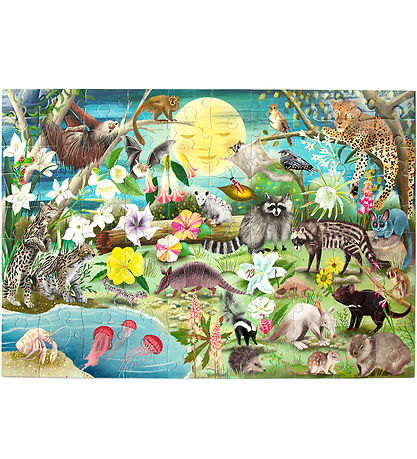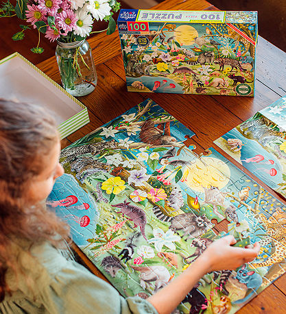 Cozy Eeboo jigsaw puzzle depicting nocturnal animals and flowers.