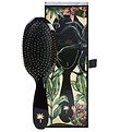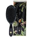 The Fan Palm brush has soft and gentle boar bristles and longer nylon bristles to stimulate the scalp and help with tangles, while the boar bristles absorb the hair's natural oil and distribute the oil along the length of the hair. It stimulates blood flow to the hair follicles, and most people find that they can reduce the frequency of hair washing to every three or four days.