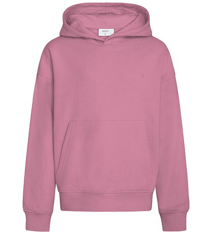 Beautiful Grunt hoodie in pink sweat, and on the back there is a large, white print. The Grunt hoodie has a classic kangaroo pocket in the front and a spacious hood. It has wide ribbed edges, which provide a good fit, and on the inside there is soft, brushed cotton.