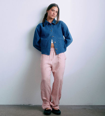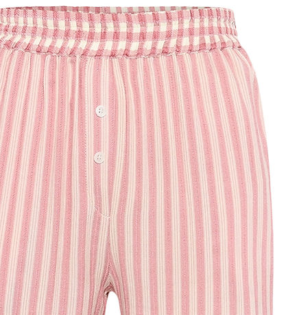 Beautiful trousers from Grunt with a striped pattern in pink and white. The design is simple and timeless, which makes them suitable for many occasions. The Trousers have a wide elastic edge at the waist, and there are small decorative white buttons on the front. There are practical pockets on the sides. The Grunt trousers have a straight cut and are made of a light, tightly woven quality.