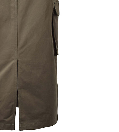 The Hound skirt has a good elastic waist with elastic in the back, adjustable buttons. It can be opens with a zipper and a button at the front. There is a flap pocket on each side and two open pockets at the front. There is an open cut at the back.