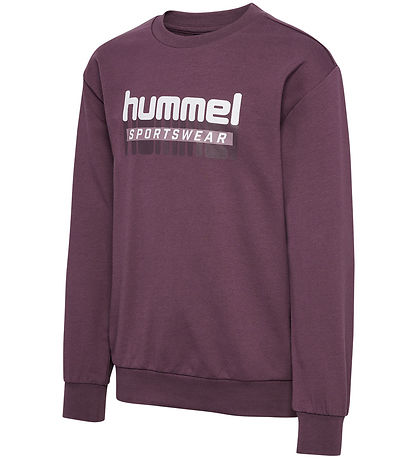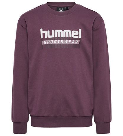 Beautiful Hummel sweatshirt in a deep purple shade with a large logo print on the front in white. The Sweatshirt has long sleeves and is ideal for both play and relaxation.