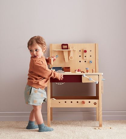 Beautiful Kids Concept tool bench of wood with lots of accessories.