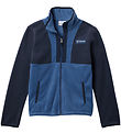 Lovely LEGO® Wear fleece jacket made of navy blue teddy fleece with inserts in a smooth woven material.