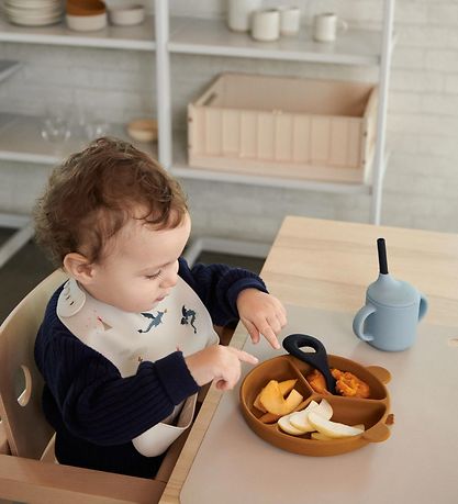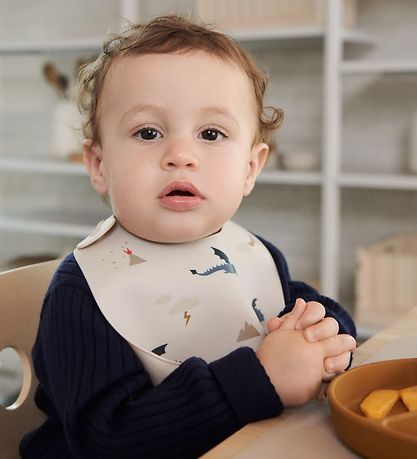 The Liewood bibs are made with silicone, which makes them easy to wipe off and can withstand being put in the dishwasher. At the bottom there is a waste pocket that collects food crumbs. The bibs have a square shape and close with silicone buttons that have several settings in the neck.