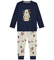 Charming Liewood pyjama set, consisting of a nightgown and a pair of night trousers in dark pink with a beautiful print of dark purple berries and green leaves. The Nightgown has long sleeves and opens at the front with buttons. The Night trousers have long legs with wide ribbed edges, and in the waist they have a narrow elastic edge.