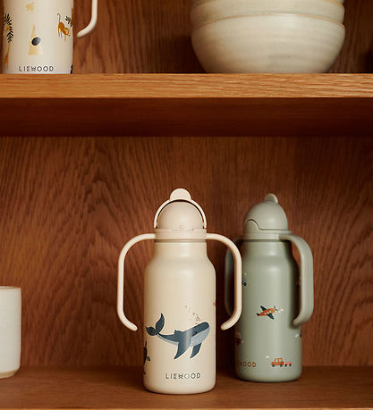The Liewood water bottle has two handles attached to the lid, so it is easy for the kid to hold the water bottle themselves. It has a practical pop-up straws, which can be hidden under the lid, so that the liquid does not pool mattress out and dirt does not get into the straw. The straw is made of soft silicone. The Water bottle is designed in stainless steel, which can keep the contents hot for up to 6 hours and cold for up to 12 hours.