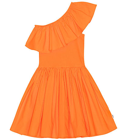 Beautiful Molo dress in orange with an asymmetrical design with a one-shoulder effect.