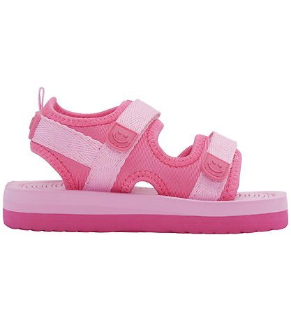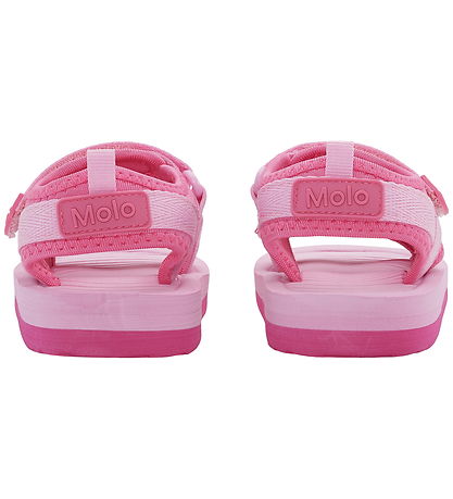 The Molo sandals are an open model. They close over the foot with two Velcro straps, and behind the heel there is a wide strap, so the sandals sit Fast on the feet. The Sandals have an upper made of soft, smooth woven textile, and the soles are made of lightweight EVA.