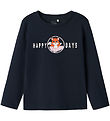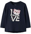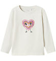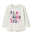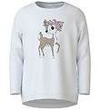 Charming Name It blouse with long sleeves in white. On the front there is a colorful print of balloons in shades of blue, pink and mint green with glittering details. The Blouse has a round neckline and a relaxed fit that is suitable for many different occasions.