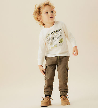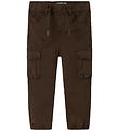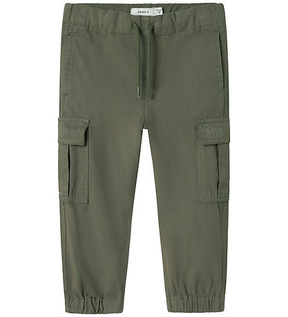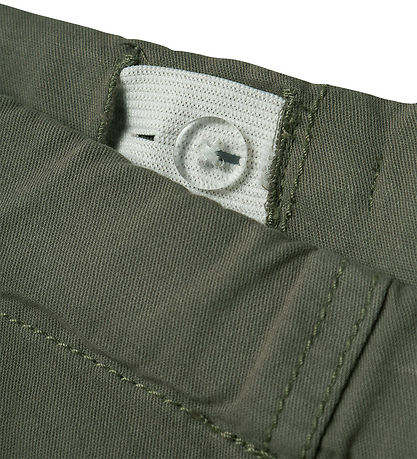 Elegant trousers from Name It in a stylish olive colour. These trousers are designed with a straight fit and have practical flap pockets on the sides that add functionality. The Trousers have an elastic at the waist for an adjustable fit.