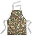 The OYOY apron has drawstring, which are tied on the back and around the neck. The Apron is perfect for the kid who wants to help in the kitchen.
