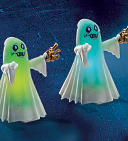 Cozy Playmobil Novelmore set with a total of 18 parts, which together form a spooky scene with a ghost with led lights and a Novelmore knight as well as treasure and lots of accessories.