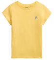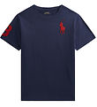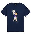 Attractive Polo Ralph Lauren t-shirt in white. The T-shirt is adorned with a charming print of a bear wearing a blue blouse with an American flag and checkered shorts. The Polo Ralph Lauren t-shirt has a classic round neckline that gives a timeless look.