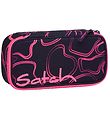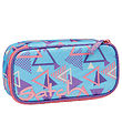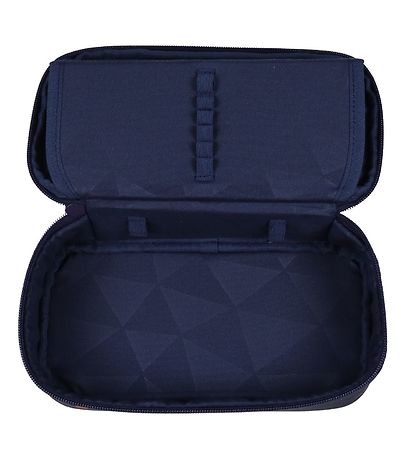 The Satch pencil case is a box pencil case with fixed sides. It opens with a zipper, and it has a zipper pocekt in the lid. The pencil case consists of one large compartment with a lid, which can be flipped up. There are 6 elastic straps at each side of the lid, where you can keep your pencils, markers, etc. If you fold the lid out, it becomes double size, and you will get access to a holder with a protractor and a plastic pocket with a school timetable. There are also 4 elastic straps inside the main compartment.