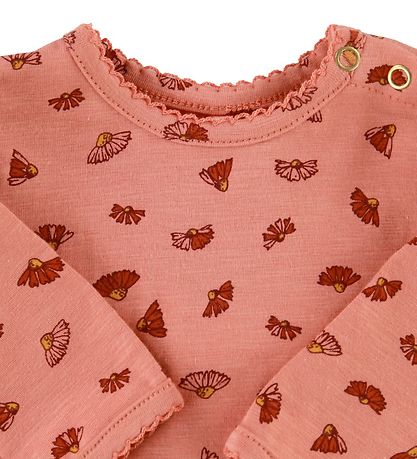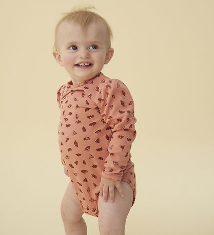 The Soft Gallery bodysuit has long sleeves and is opened with practical push buttons at the left shoulder and between the legs. The bodysuit has a round neckline with a nice lace edge at all openings.