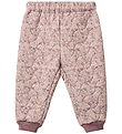 Beautiful Wheat thermo trousers with an all-over print of flowers in different shades of pink on a beige background. The Thermo trousers have a wavy, quilted structure.