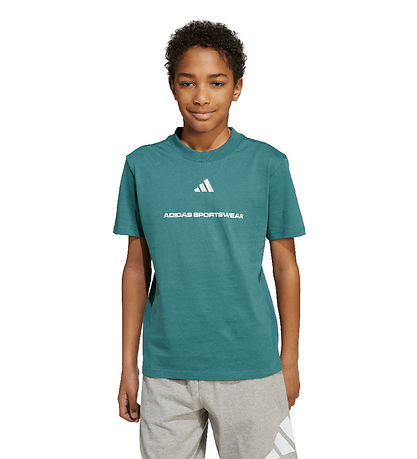 Stylish adidas Performance t-shirt in a beautiful green shade with the adidas Performance logo and the text "adidas SPORTSWEAR" in white, adding a modern look.