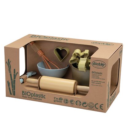 The sustainable Dantoy bake kit is CE marked and produced in Denmark. It is made of BIO plastic made from sugar cane, which is 100% recyclable. Sugar cane is a renewable raw material that absorbs CO2 from the air and therefore protects the environment by reducing pollution.