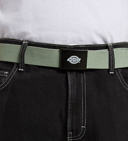 Smart Dickies belt in green. The belt buckle is black with a white logo print. The Dickies belt opens at the front with a metal belt buckle. The Belt can be adjusted freely, as it is Fast with teeth.