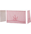 The Hoppekids curtain fits the half-height bed from Hoppekids, and it transforms the area under the bed into a cozy cave. The curtain consists of two end pieces and a larger piece which covers one long side to the ladder up to the bed. On the long side there are two windows, so you can look out from inside the cave.