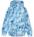 The Hound raincoat is a long model that goes down well over the bum. It has a fixed hood, which can be tightened along the edge with a lace at the front. The raincoat closes with a zipper, and in the sides there are practical pockets which close with a hidden push-botton.