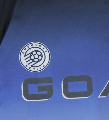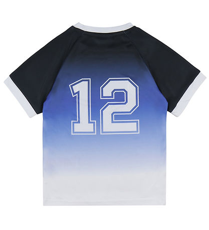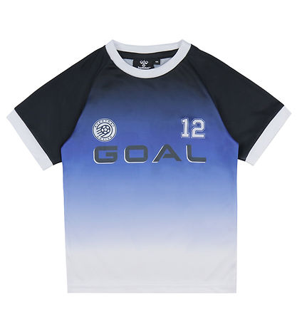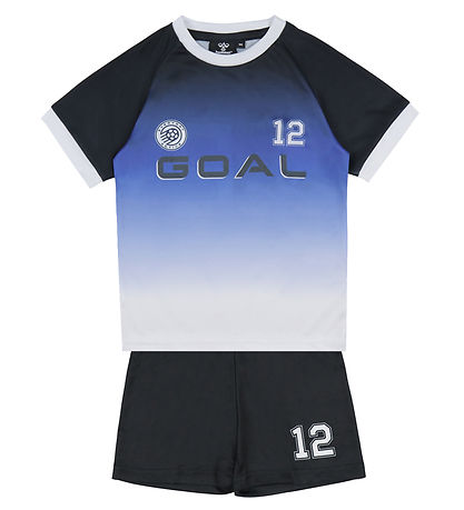 Smart Hummel tracksuit consisting of a t-shirt and a pair of shorts. The Tracksuits has a nice color transition from black to white with blue details and with "GOAL" printed on the t-shirt as well as a "12" print.