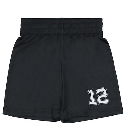 The Hummel T-shirt has short sleeves and a round throat with white trim. The Shorts are black with the number "12" printed on the bottom of the left leg and have an elastic waist.
