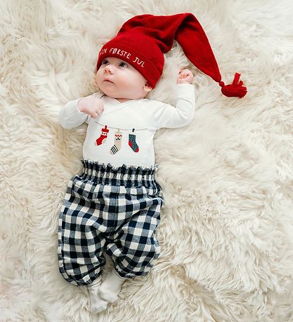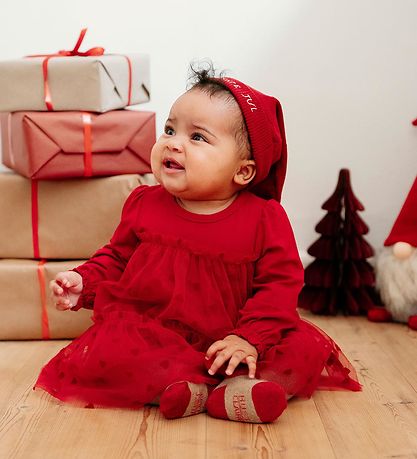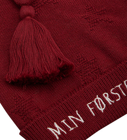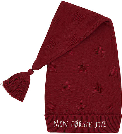 Beautiful Hust and Claire christmas hat in a deep red colour with the embroidery "MY FIRST CHRISTMAS" on the brim. The Beanie has a classic shape with a fine tassel at the end that adds charm to any winter wardrobe.