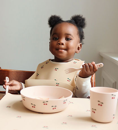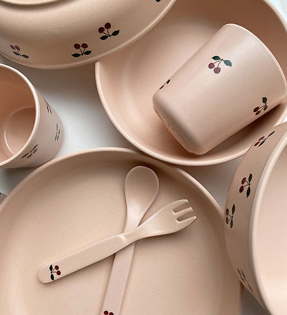 Nice Konges Sløjd dinner set in pink with cherry print.
