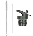 A Little Lovely Company water bottle set fits the brand's own stainless drinking bottles. The lid has a smart handle and a sports spout that can be folded up and down. The lid closes tightly thanks to a practical silicone edge. The cleaning brush is easy to use on the supplied straws.