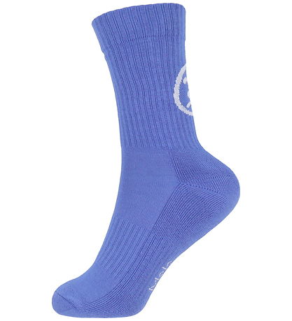 Cool Molo socks in a 2-Pack with one pair in blue and one pair in white. Each sock has a discreet logo on the back. The Molo socks have a long ribbed shaft with elastic at the top, which provides a good and stable fit.