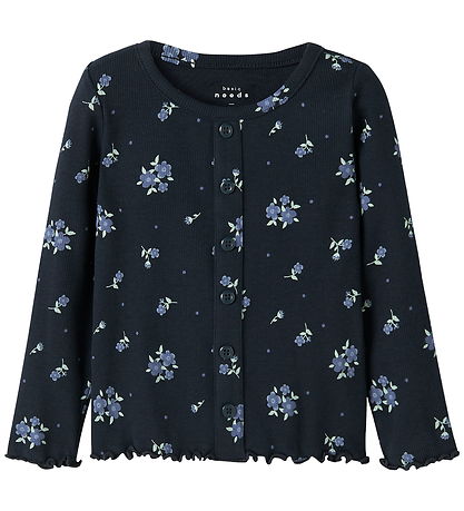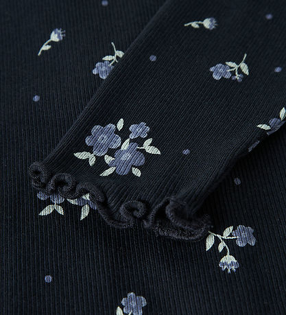 Elegant blouse from Name It with long sleeves and a beautiful dark blue colour. The Blouse is decorated with a delicate floral print in shades of purple and light green. The Blouse has decorative buttons at the front, which gives a classic look, while the ribbed structure adds a modern twist. The edges of the blouse are slightly wavy, which highlights the unique design from Name It.