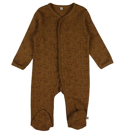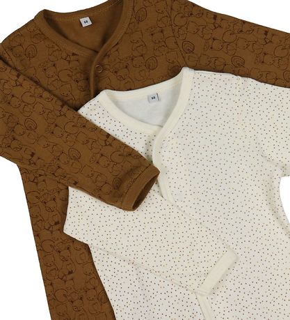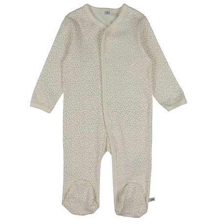 The Nightsuits have long sleeves and legs with w. footies. They open at the front using a continuous closure with push buttons from the neck opening to the left foot. The Nightsuits have rib at the neck opening and wrists, which ensures a good and comfortable fit.