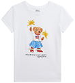 Charming Polo Ralph Lauren t-shirt in white. The T-shirt has a cute print on the front with a bear wearing a blouse with the American flag, blue skirt and red shoes, and it holds sparklers in its hands. The Polo Ralph Lauren t-shirt has a round neckline with a narrow ribbed edge.