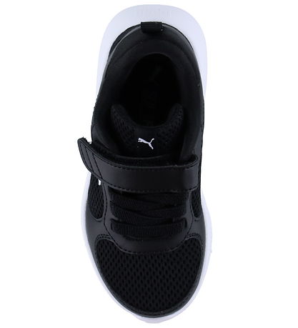 Stylish Puma shoes in black mesh with same colour details and white logo.